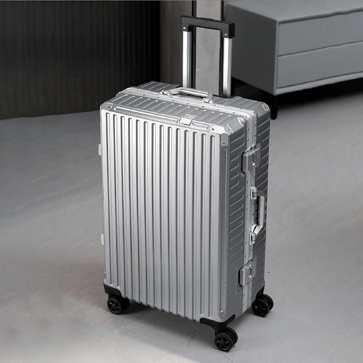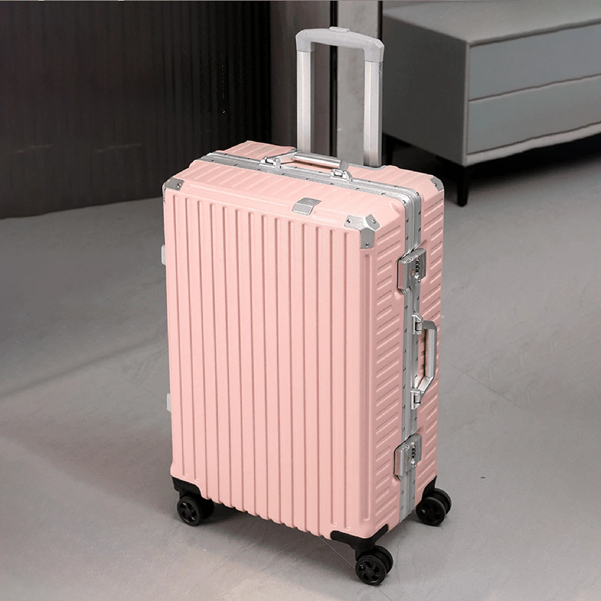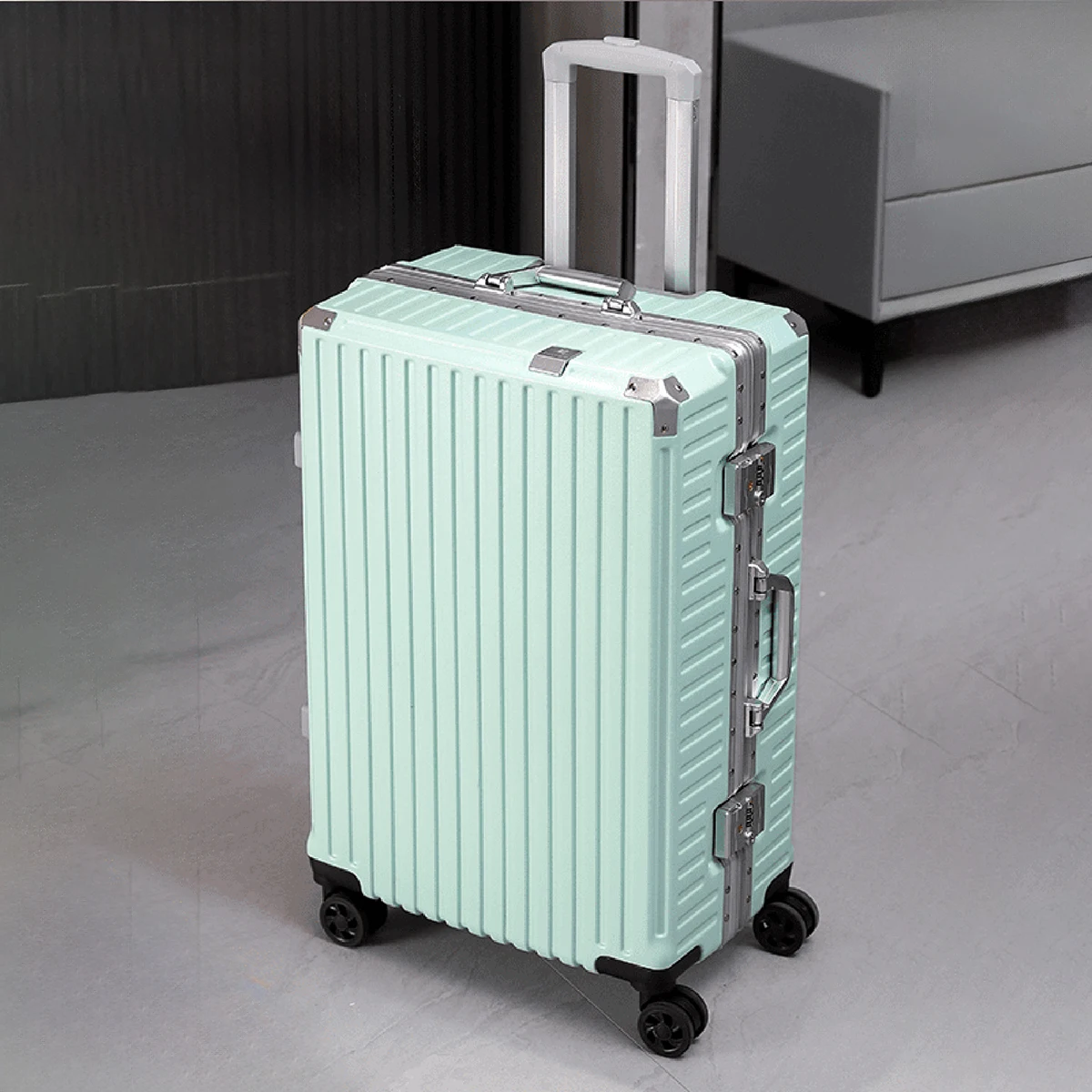 Travel smart with this versatile trolley luggage, available in 20", 24", 26", and 28" sizes. Featuring a sturdy aluminum frame, smooth-rolling wheels, and a built-in USB port, it keeps your belongings secure and your devices charged on the go.